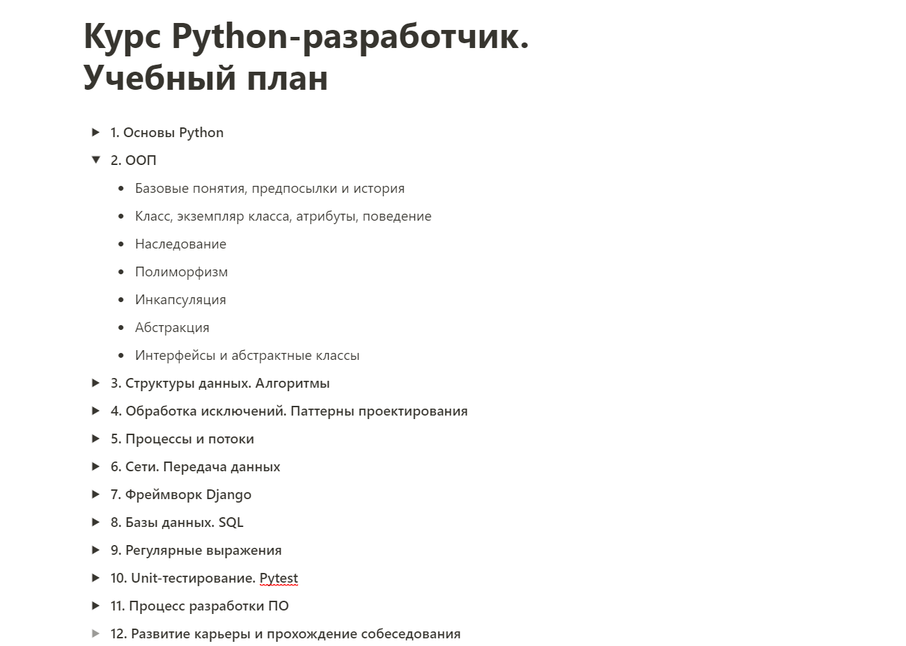 Как мы определяем содержание программы? Помогает анализ рынка, в том числе предложений на HeadHunter. Например, берем 10 вакансий категории junior по направлению программирования на Python. Смотрим, какие требования предъявляют работодатели. Делим их на базовые, дополнительные, второстепенные и составляем список актуальных тем для онлайн-курса. Несем на согласование к эксперту — так мы называем специалиста из сторонней компании, который либо напрямую, либо косвенно связан с наймом сотрудников и хорошо знаком с реалиями на рынке труда в выбранной нами сфере.